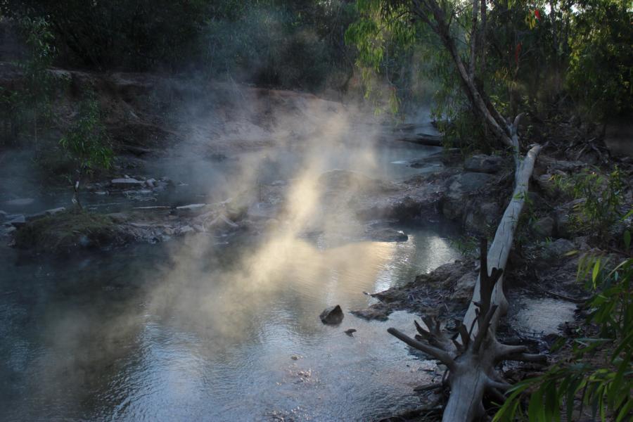 Weiter nördlich wird es wieder witzig. Bei den Tjuwaliyn Hot Springs kommt heißes Wasser über eine Länge von 500 Metern aus der Erde und vermischt sich mit dem kalten Wasser des Douglas Rivers. Jeder wählt sich seine persönliche Badetemperatur aus, sitzt im seichten Wasser und hält einen Plausch mit dem Nachbarn.