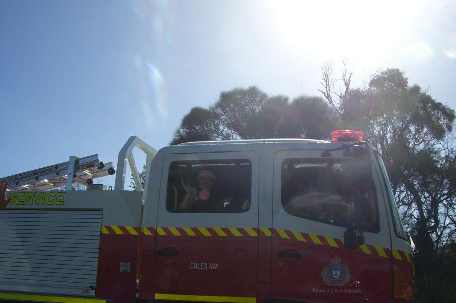 Morgens hört die Sirene eines Einsatzfahrzeuges in der Ferne gar nicht mehr auf. Wundern uns, dass sie immer näher kommt und trauen unseren Augen nicht, als ein schickes Feuerwehrfahrzeug um die Ecke biegt und Süßigkeiten verteilt.
