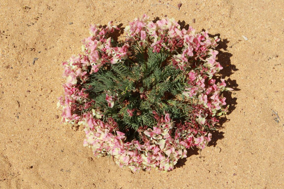 Es geht dennoch weiter. Wir fahren die 50 Kilometer Umweg um die Wreath Flowers zu sehen, die nur an sehr wenigen Stellen wachsen. Rechts und links am Rand einer Schotterpiste, auf einer Strecke von ca. 500 Metern, sprießen die Wreath Flowers. Die kranzförmige Anordnung der Blüten macht diese Pflanze zu etwas Besonderem.