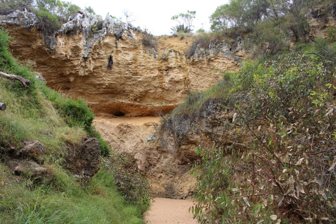 Zuerst führt uns eine sandige mit Felsabschnitten besetzte Piste zu der Höhle. Wir parken Blue auf dem leeren Parkplatz und machen uns auf den Weg. Wissen nur, dass es eine Höhle ist, durch die man gehen kann. Früher trieben Farmer ihre Rinder und Schafe zum Schutz in die Höhle.