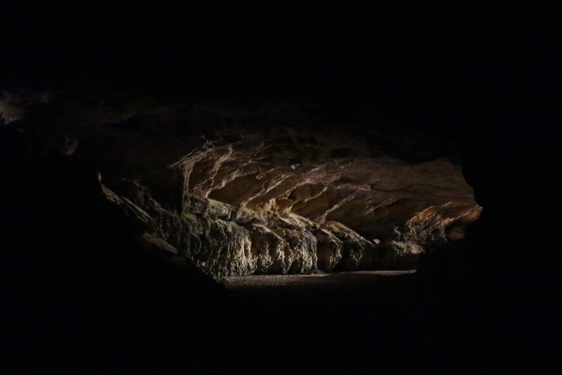 Mit mulmigen Gefühl gehen wir ins Abenteuer und sind heilfroh eine starke Taschenlampe dabei zu haben. Kurz reicht das Tageslicht in die Höhle, doch durch die Windungen wird es zunehmend dunkler, bis wir schließlich nichts mehr sehen, Dunkelheit umgibt uns. Spooky!!!