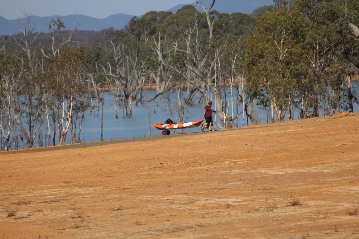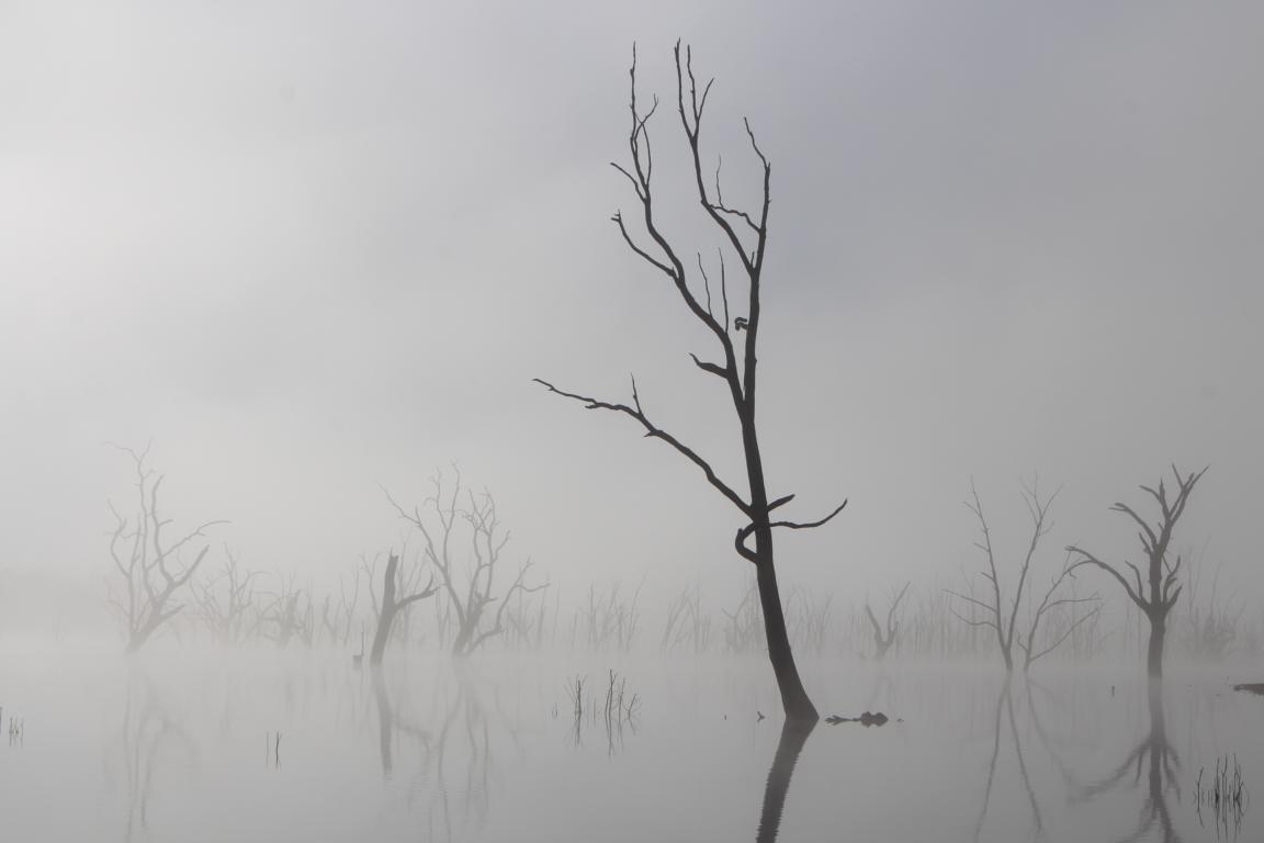 Das Wetter an der Küste war die letzten Tage ein wenig unbeständig und im Landesinneren scheint die Sonne. Also auf nach Norden zu einem Stausee, westlich der Grampians. Um 1950 wurde der Damm fertiggestellt und ein riesiger See entstand. Die umliegenden Farmen und Städte nutzen das Wasser und wer will campt an seinen Ufern. Interessant ist, dass die Bäume vor der Überflutung nicht abgesägt wurden, mit der Zeit abstarben und nach 70 Jahren im Wasser immer noch stehen. Das Wasser lockt zum Schwimmen, nette Spazierwege führen am Ufer entlang und die Bäume leuchten je nach Tageszeit in unterschiedlichen Farben.