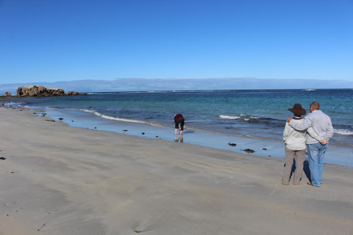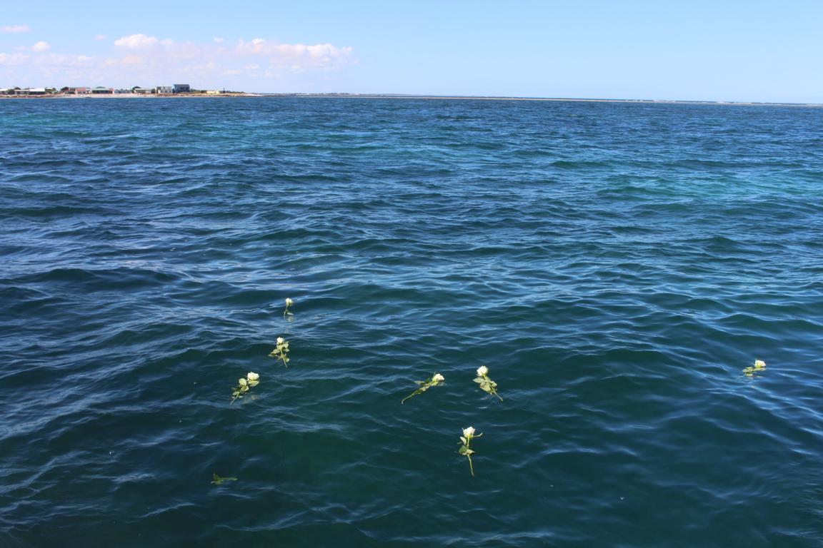 Margarets leibliche Reise geht am Strand südlich von Mount Gambier zu Ende. Am Campingplatz beim Leuchtturm treffen wir Togo und Voytek geht den schweren Gang und verstreut Margarets Asche im Meer und vom Boot von Freunden.