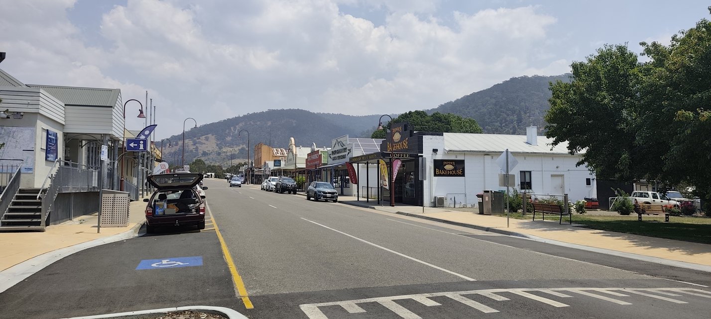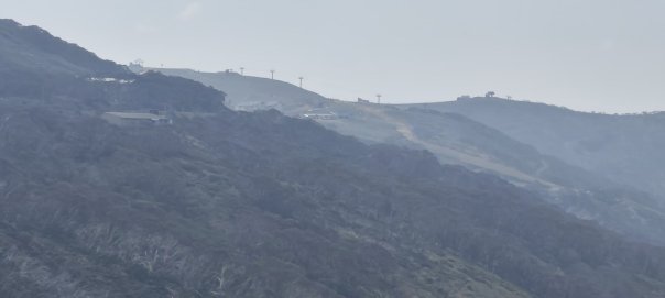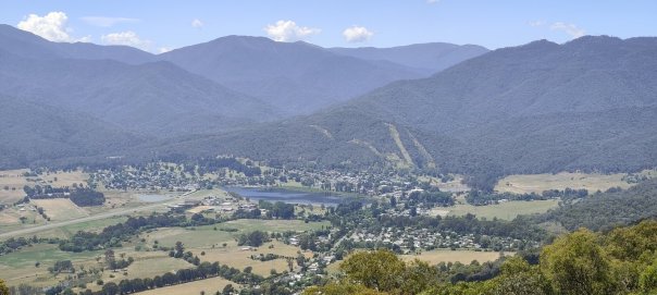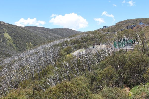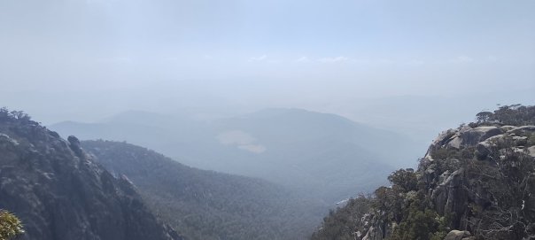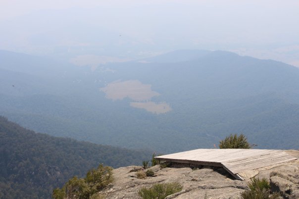 Für uns wird es schwieriger die geeignete und vor allem sichere Reiseroute zu wählen . Wir finden sie über die Hotham Heights, einem Hochplateau mit großem Skigebiet. Die Fernsicht von oben ist durch die, vom Rauch diesige Luft eingeschränkt, so dass wir das nächste Camp im Tal aufschlagen.