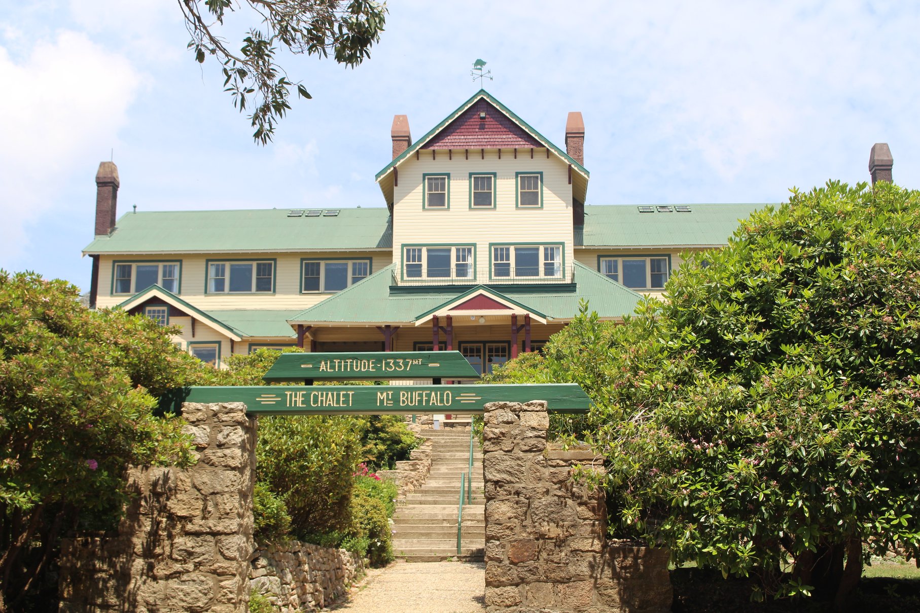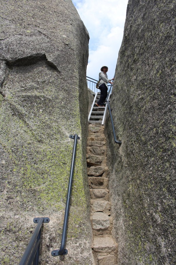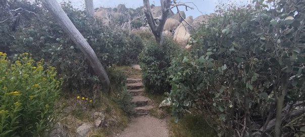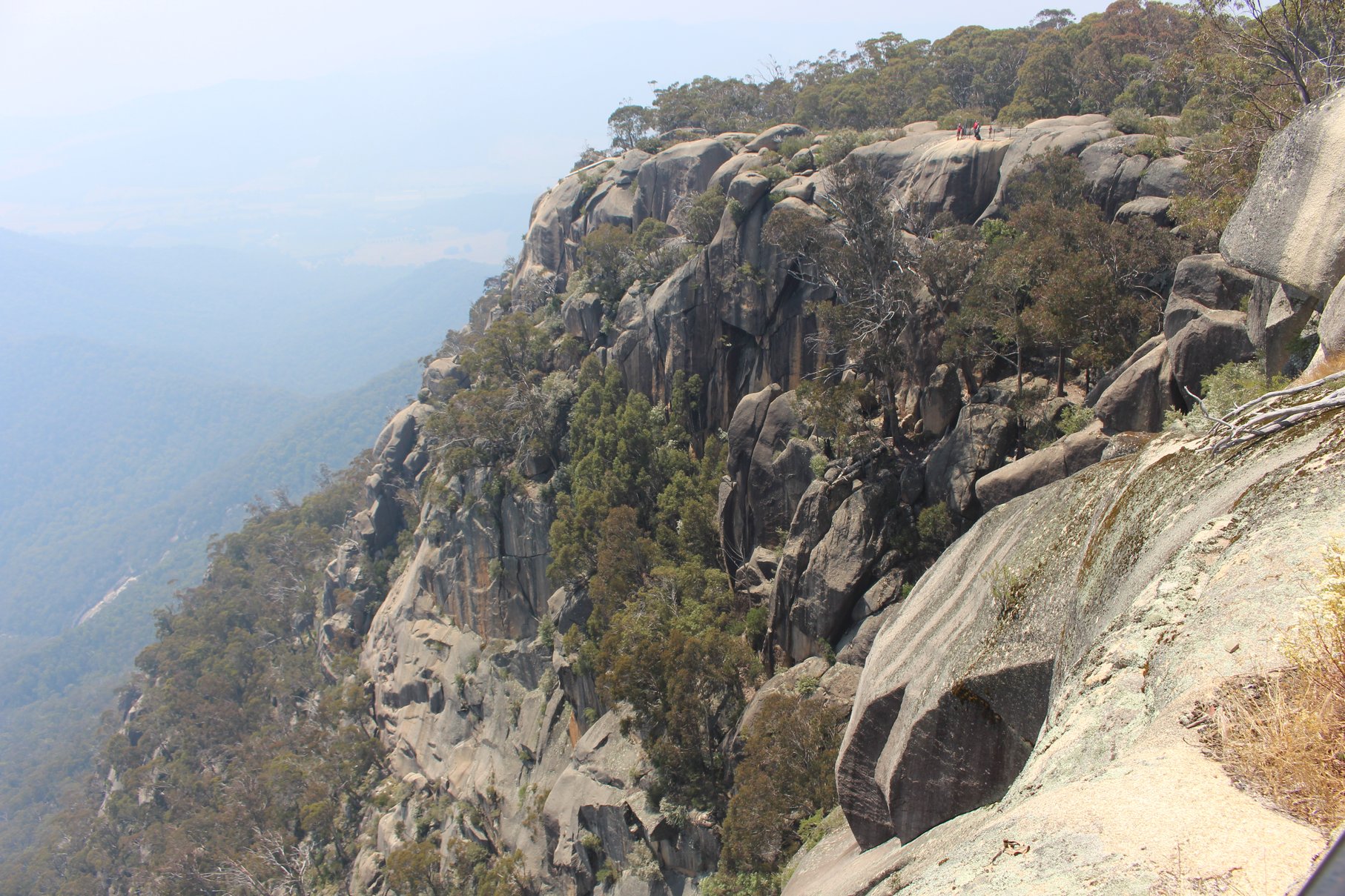 Ein weiterer interessanter Park in den Alpines ist der Mount Buffalo NP. Die mächtige zerklüftete Granitkuppe des Mount Buffalos ragt wie eine Insel aus der umgebenden Hügellandschaft heraus. 90 Kilometer Wanderwege durchziehen den Park und die meisten davon sehen wir uns auf der Landkarte an. Imposant ist die Wanderung zum Gipfel des Mount Buffalos. Über vorbildlich ausgebaute Wege und Metallführungen kann auch der wenig trittsichere Wanderer den Blick vom Gipfel genießen.