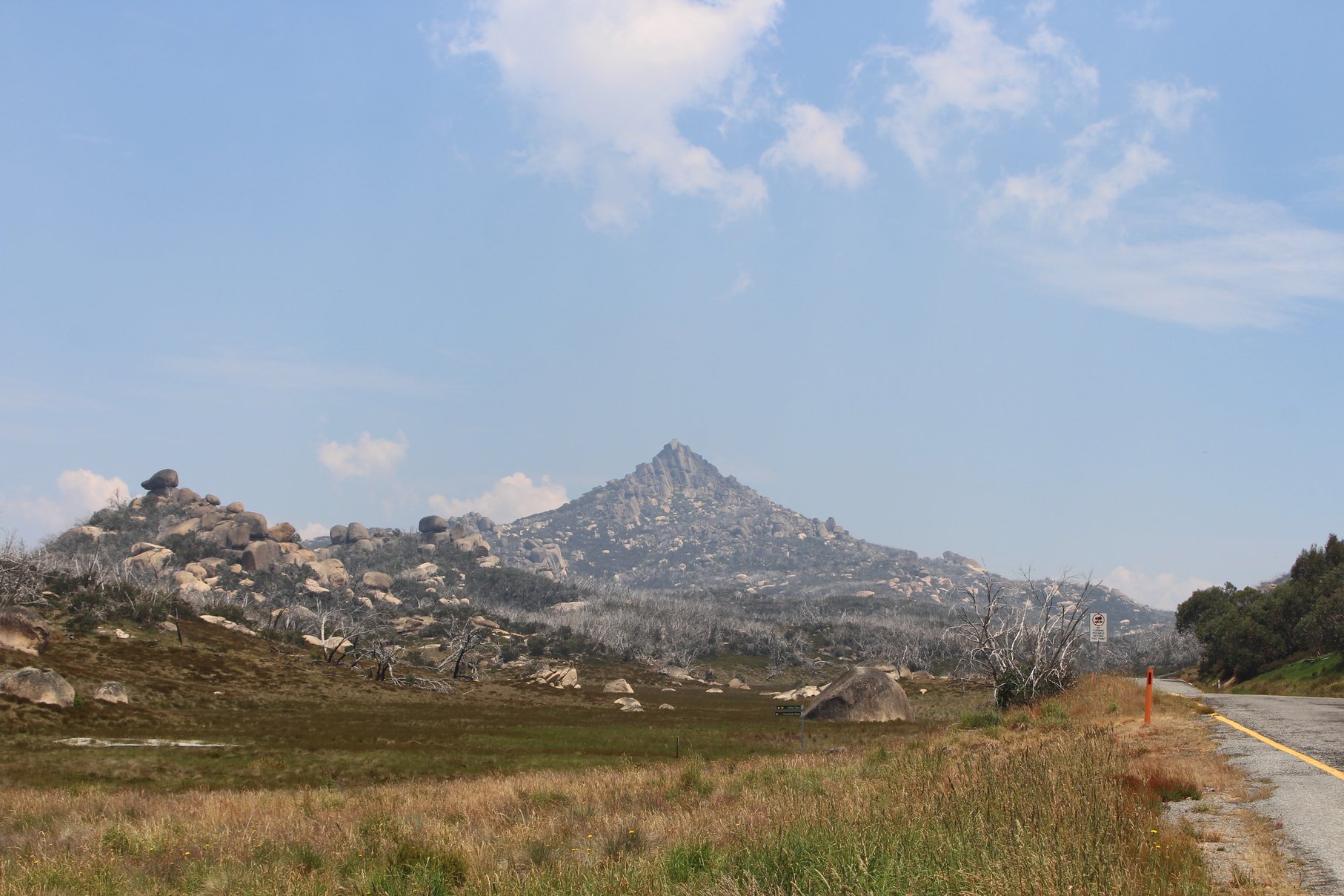 So langsam kommen wir den australischen Alpen näher. Die Berge prägen weniger hohe Gipfel, als langgezogene Hügelketten und Hochplateaus, der Mt. Kosciuszko mit seinen 2.229 m die höchste Erhebung.