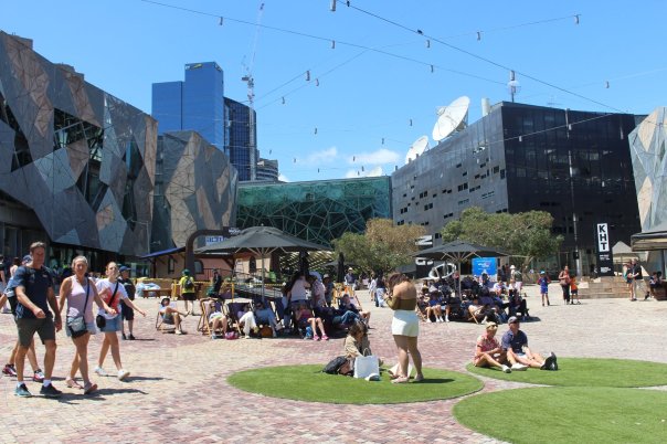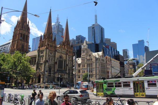 Nach der gemütlichen Ruhe bei Myrtleford geht es zum multikulturellen Zentrum Victorias, nach Melbourne. Eine Stadt mit 5,2 Millionen Einwohnern und einer Fläche von 10.000 km². München wirkt im Vergleich mit seinen 1,5 Millionen Einwohnern und 310 km² bescheiden. Und nicht nur das, in der riesigen Innenstadt pulsiert das Leben an allen Ecken und Enden. Bürogebäude, Shoppingmalls, Wolkenkratzer, Cafés, Restaurants, Museen, Theater, Nachtleben ….