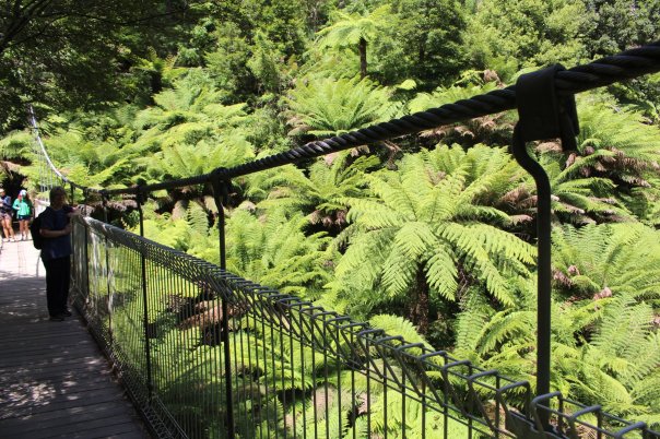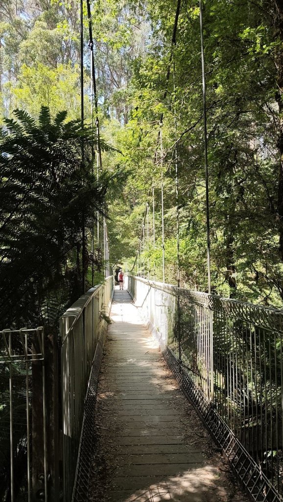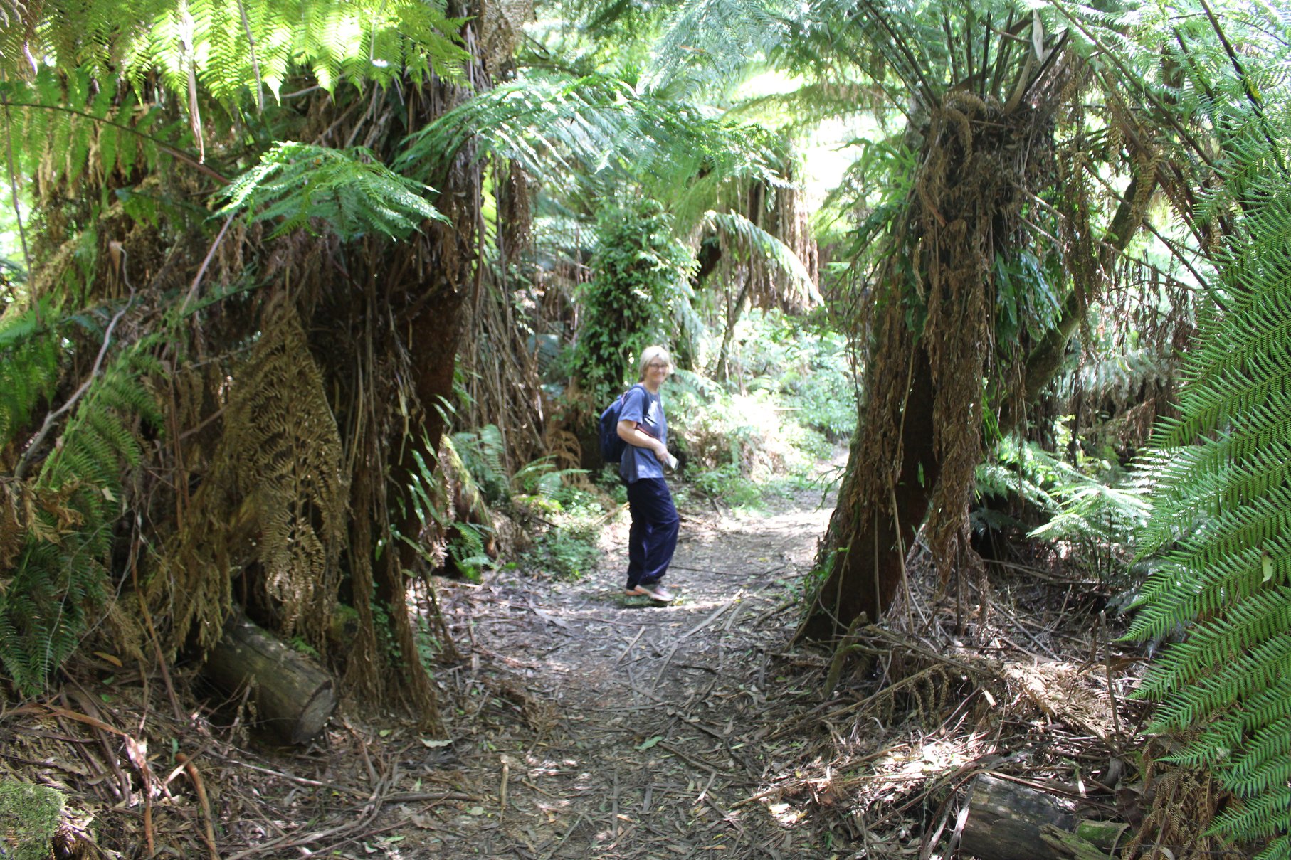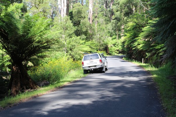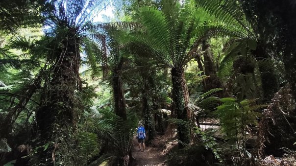 3 Tage Großstadttreiben reichen uns und im Tarra-Bulga NP finden wir ruhigere Gefilde. Die Besonderheit des Parks sind alte Vegetationszonen, die schon zu prähistorischen Zeiten den ganzen Osten Australiens umfassten. Zahlreiche mystische Wanderwege führen durch einen Regenwald mit Farnbäumen, alten Myrtlebäumen und Eukalyptusbäumen, die bis zu 80 Meter Höhe erreichen.
