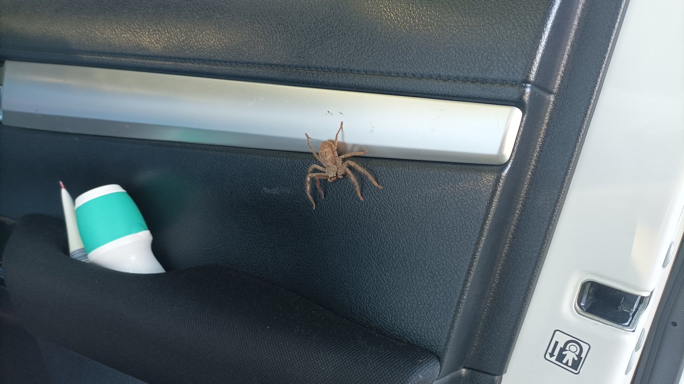 Der Huntsman wächst handtellergroß und zählt zu den geliebten Tieren Australiens, den Spinnen. Bei der Abreise aus Melbourne auf dem Highway krabbelte doch glatt ein Huntsman, zum Glück außen die Windschutzscheibe hoch. Thomas der Fahrer bleibt cool und die Spinne verschwindet auf dem Autodach. Dachten der Fahrtwind weht ihn davon, doch 3 Tage später, hatten ihn schon längst vergessen, öffnet Susi die Autotür und wer sitzt auf der Innenseite der Tür? Der Huntsman, wahrscheinlich der von vor 3 Tagen. Susi wird nervös, findet dennoch den Mut ein Foto zu machen, bevor Thomas ihn mit dem Handtuch auf die Wiese wischt und er ward nicht mehr gesehen. Dachten wir. Ne Stunde später sitzt Thomas im Windschatten von Snowy im Stuhl, liest, und wer sitzt plötzlich auf der Jeans von Thomas, unser Huntsman. Irgendwann ist Schluss mit lustig und diesen Zug überlebt der Huntsman nicht. Die Jungs, so lernen wir sind ziemlich ortstreu. Dabei ist der Huntsman weder giftig noch aggressiv, nur groß. Doch wir sind über seine Nähe not amused. Die Kerle haben es eh nicht leicht, Feinde wie Reptilien, Vögel, Menschen …. überall.