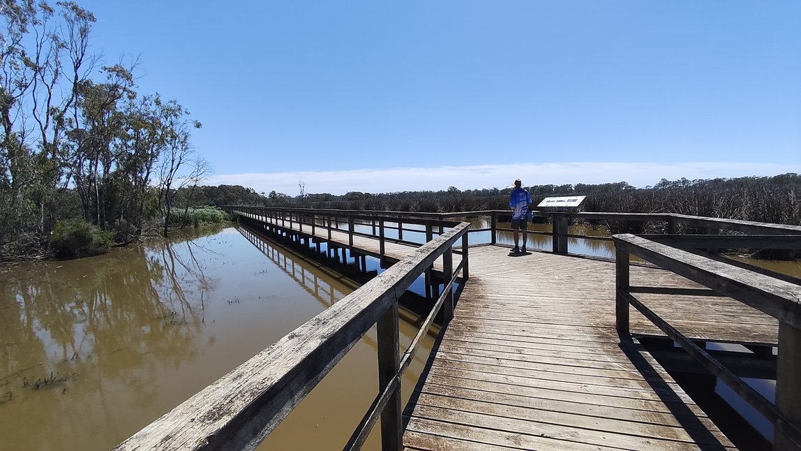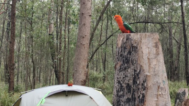 Zwei Monate auf der Straße und noch kein Meer. Das ändert sich bei Port Albert, wo es leckeren Fisch & Chips mit schöner Aussicht gibt. An sich wollen wir in der Gegend ein paar Tage verbringen, doch der mangelnde Schatten lässt nur einen kurzen Besuch zu und auf dem Waldplatz im Landesinneren finden wir eine lebendige Alternative. Kaum schlagen wir unser Lager auf, besucht uns eine neugierige Bande King Parrots. Zutraulich sitzen sie auf dem Autodach und hoffen auf ein paar Leckerlis, die sie von uns nicht erhalten.