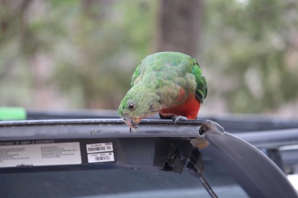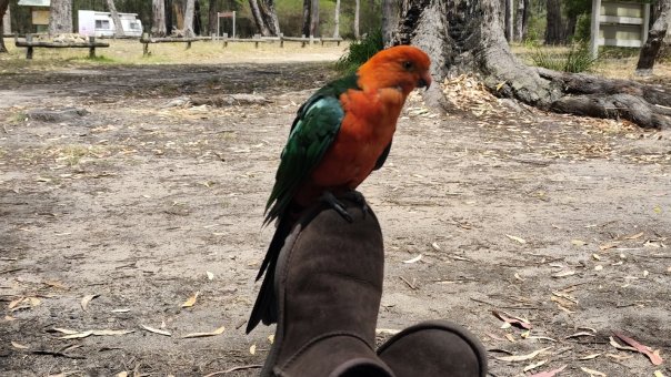 Kleiner Small Talk mit einem King Parrot noch nicht ganz erwachsen