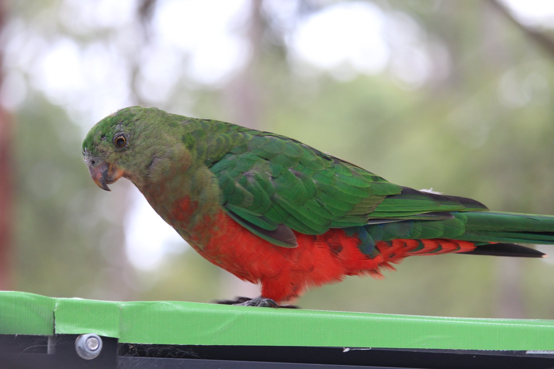 King Parrot ♂, ist genervt vom Junen der Futter will