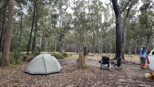 Die Lagune hinter dem Ninety Miles Beach und dem The Lakes NP ist mit seinem Städtchen Loch Sport und Camps lieblicher und auch dort bleiben wir, bevor es nach Nowa Nowa auf einen wirtschaftlich geführten Campingplatz mit Duschen, Wasser und Strom geht.