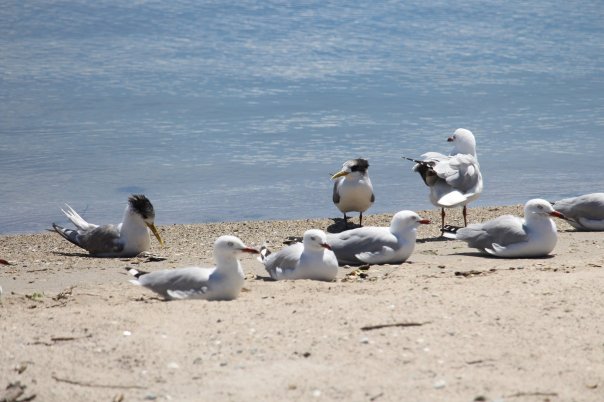 Silver Gull (Möwe) und Caspian Tern (Kapische Seeschwalbe), Loch Sport