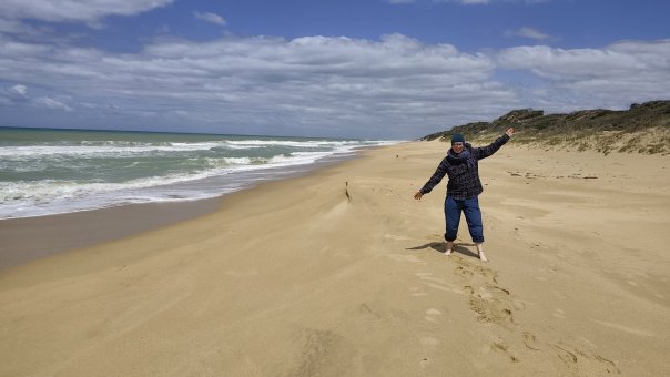 Wie Perlen reihen sich die Campingmöglichkeiten entlang des Ninety-Miles Beach. Geschützt hinter Dünen unter Bäumen, wählen wir einen der Plätze. Das Meer vor unserer Nase mit seinen ewig langen einsamen Sandstränden lädt zu langen Spaziergängen ein.