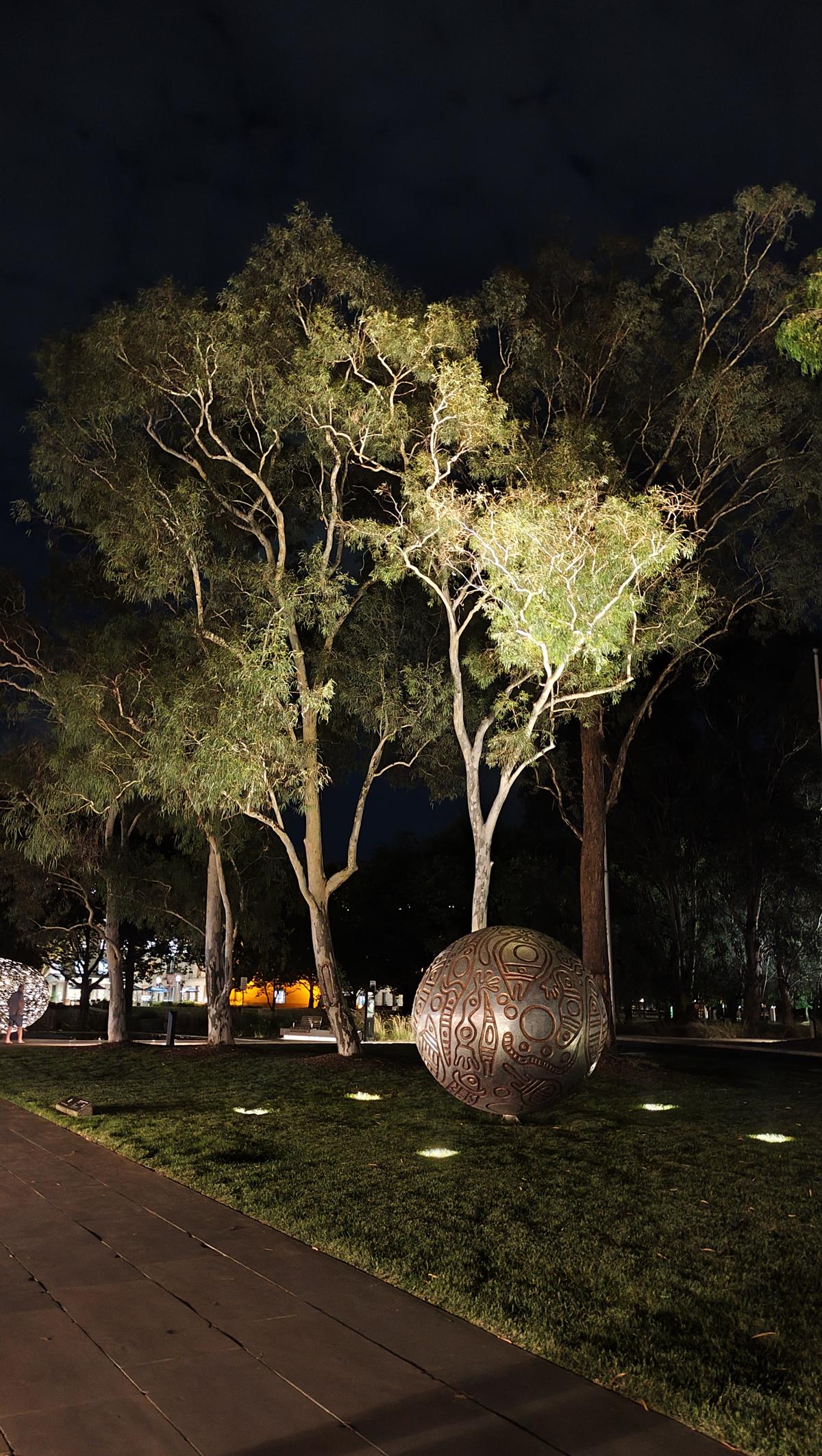 Canberra bietet seinen Bürgern mit zahlreichen unterschiedlichen Festivitäten, Kulturveranstaltungen vieles. In unserer Zeit liegt das Enlighten Festival. Das Herzstück von Enlighten Canberra ist die Beleuchtung von Canberras kulturellen Institutionen nach Einbruch der Dunkelheit, darunter Old Parliament House, Parliament House und die National Gallery of Australia begleitet mit Live-Musik, Filmvorführungen und Imbissmeile. Bummeln mit den beiden abends durch die Anlagen und besichtigen Canberra mit seinen Highlights nachdem wir Narelle und Peter verlassen noch einmal im Hellen.