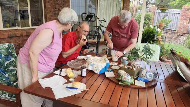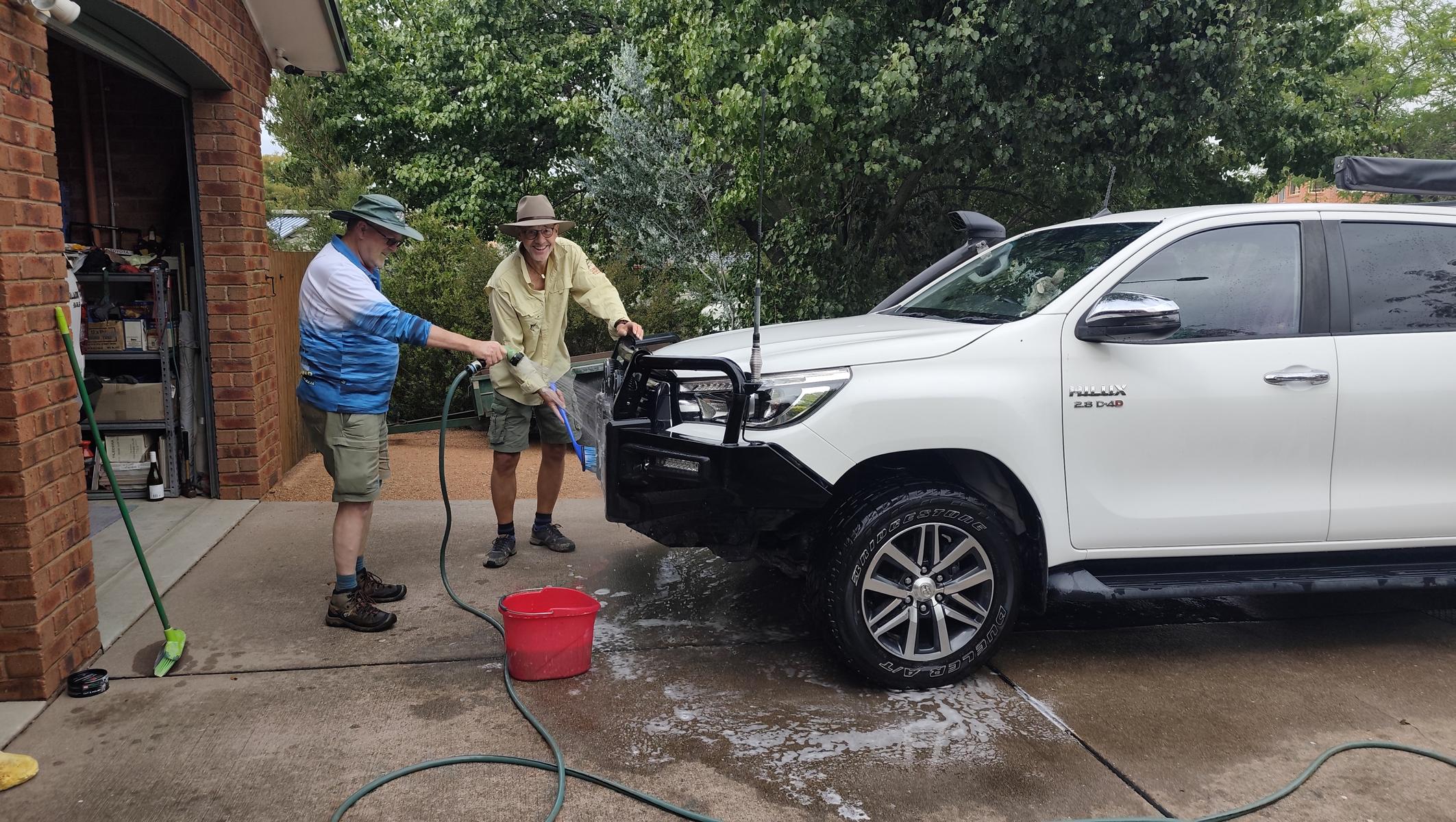 Narelle und Peter kümmern sich liebevoll um uns und wir ratschen viel. Peter zeigt uns mit dem „Finger auf der Landkarte“ viele interessante Punkte, Camps und Strecken auf unserer folgenden Reise.