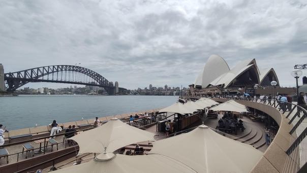 Die Fläche ist nicht klein und beherbergt das weltberühmte Sydney Opera House, die Harbour Bridge, The Rocks, den Royal Botanic Garden, den Ankerplatz für Kreuzfahrtschiffe und den Fährhafen mit Booten in alle Richtungen. Alles für sich alleine schon ein Highlight und dann zusammen nebeneinander. Die Gegend ist unserer Lieblingsspatz Sydneys und halten uns die meiste Zeit dort auf.
