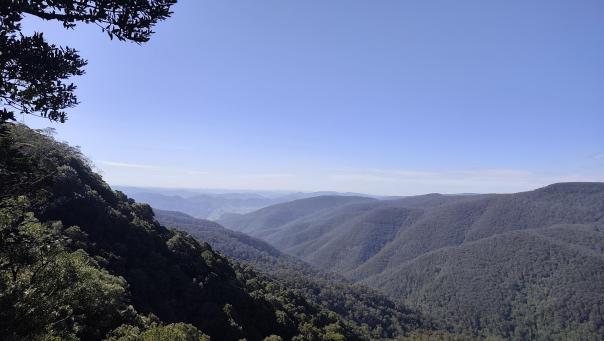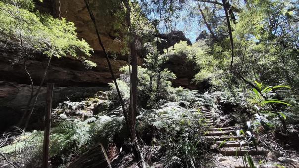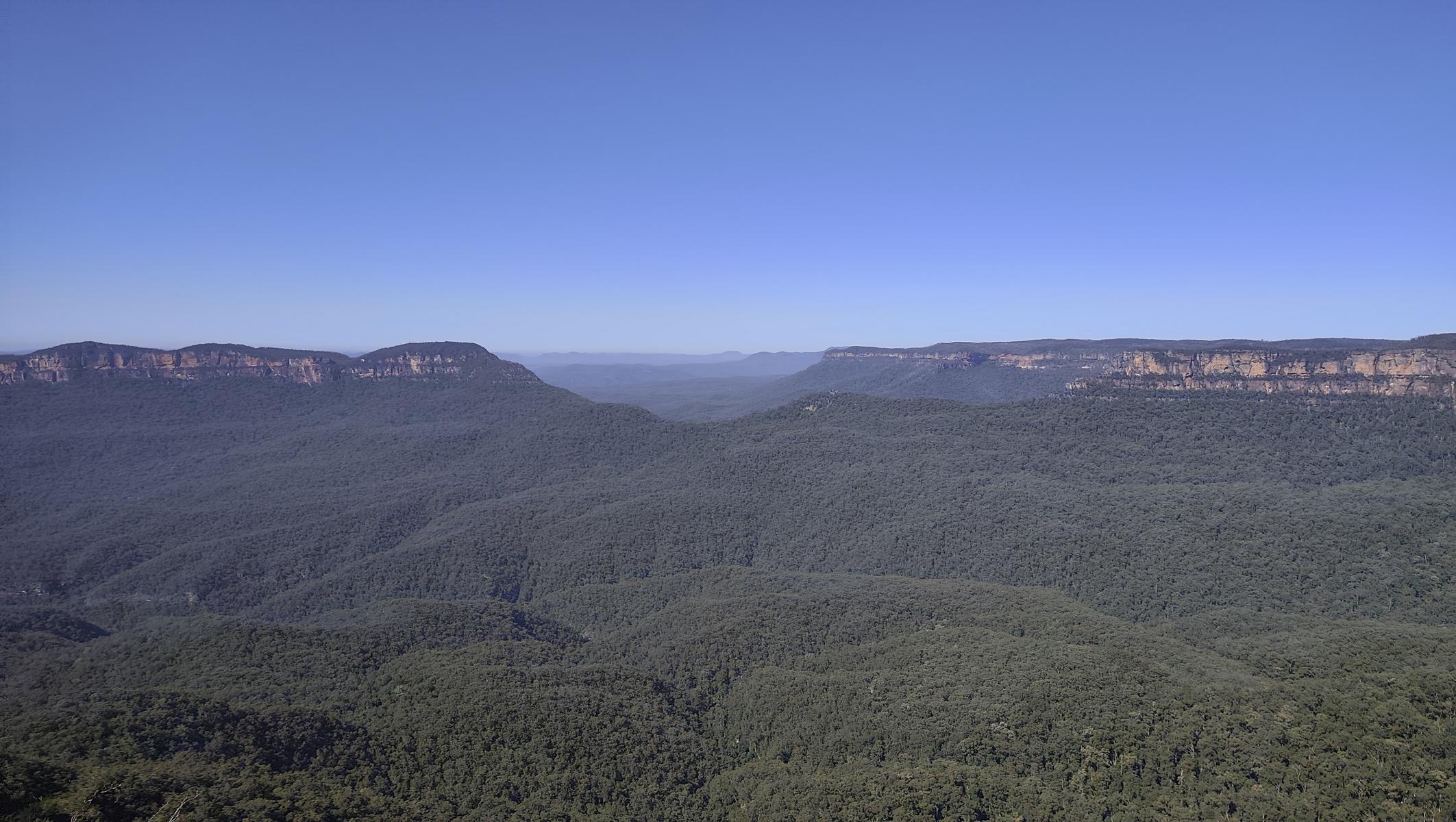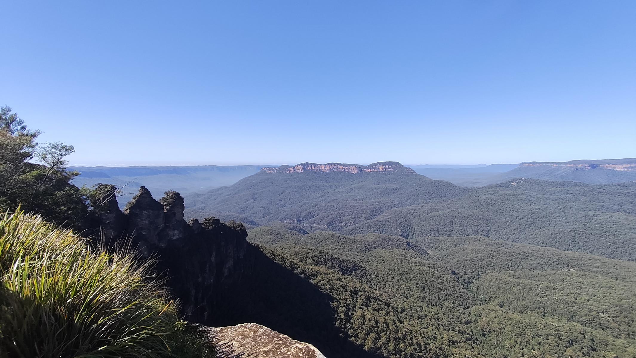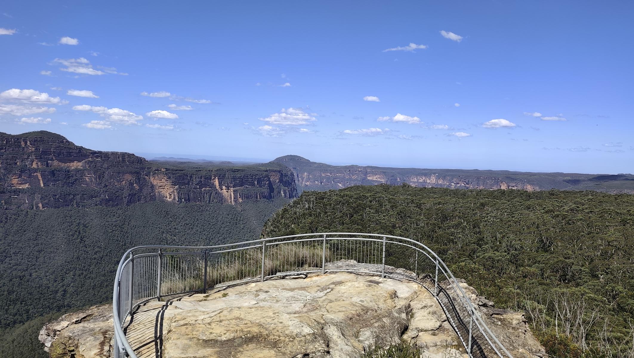 Die Blue Mountains liegen auf einem ca. 1.000 m hohem Hochplateau und über Jahrmillionen schufen Wasser, Wind und Erosion den Canyon mit seinen steilen Klippen. Im Tal schimmern die Eukalyptusbäume leicht bläulich und es riecht nach Eukalyptusöl. Zahlreiche wunderschöne Tages oder Mehrtageswanderungen durchziehen den Canyon. Von der Canyon Kante bieten zahlreiche Aussichtspunkte, atemberaubende Blicke in das Tal. Da die Wege noch sehr nass sind, bestaunen wir die Blue Mountains dieses Mal von oben.