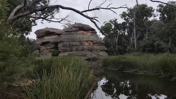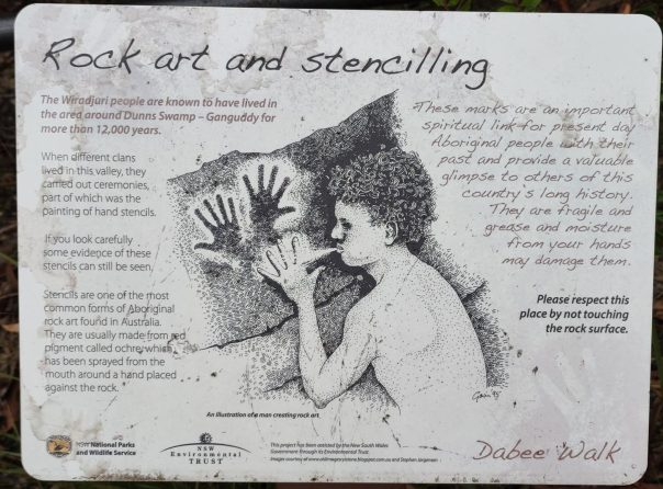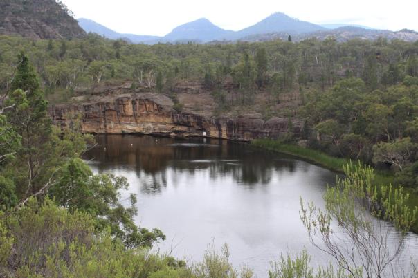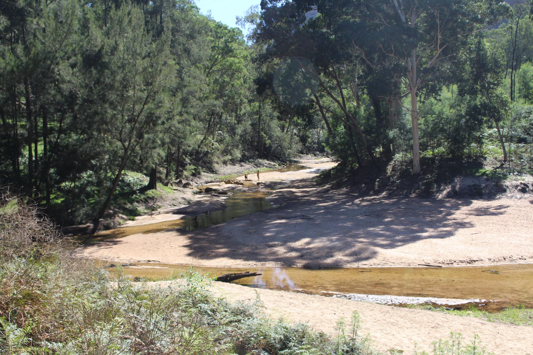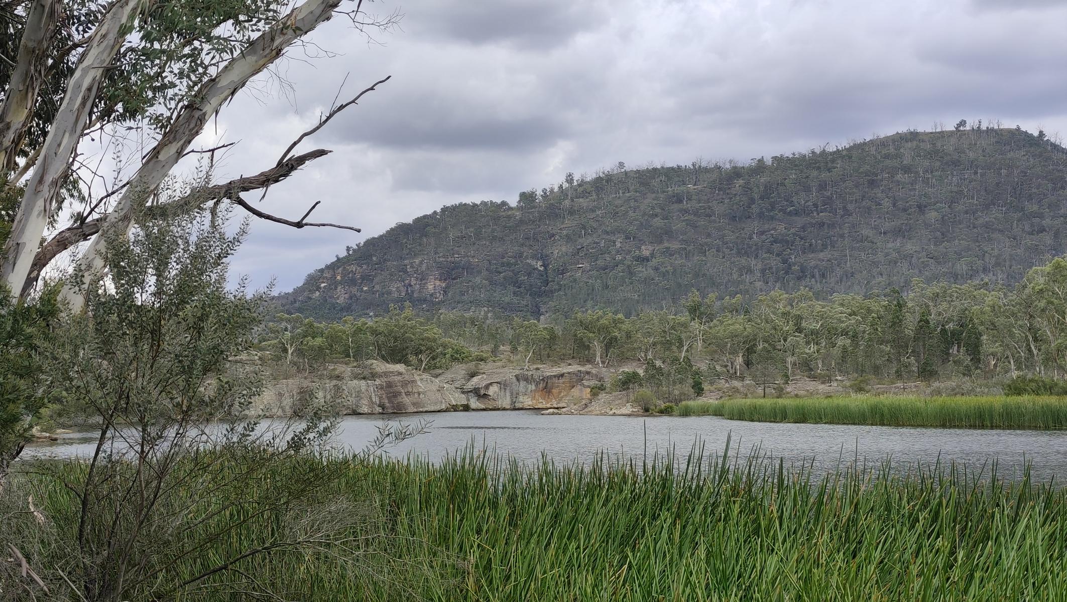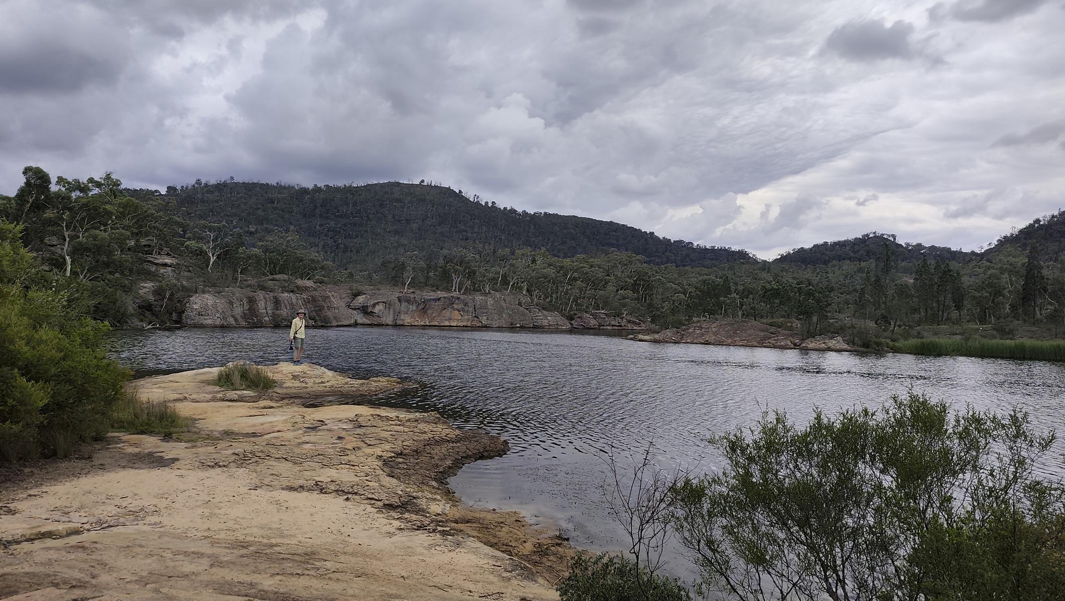 Ebenso im Wollemi NP angrenzend an das Capertee Valley besuchen wir den Ganguddy-Dunns Swamp Park. Der breite Flussabschnitt entstand 1922 nach dem Bau eines Wehres welches den Gudegang River staute für ein Zementwerk in einer näheren Stadt. Jetzt ist der gestaute Fluss ein idyllischer Ort. Der Campingplatz liegt um eine Pagoden-Sandsteinformation, der See lädt zum Schwimmen oder paddeln ein und Wanderwege führen entlang des Gewässers.