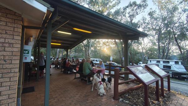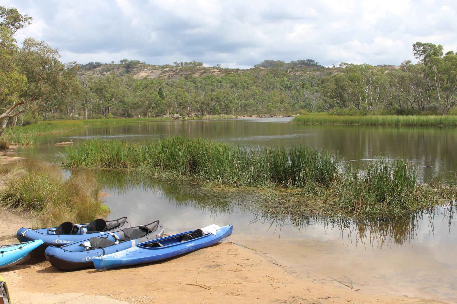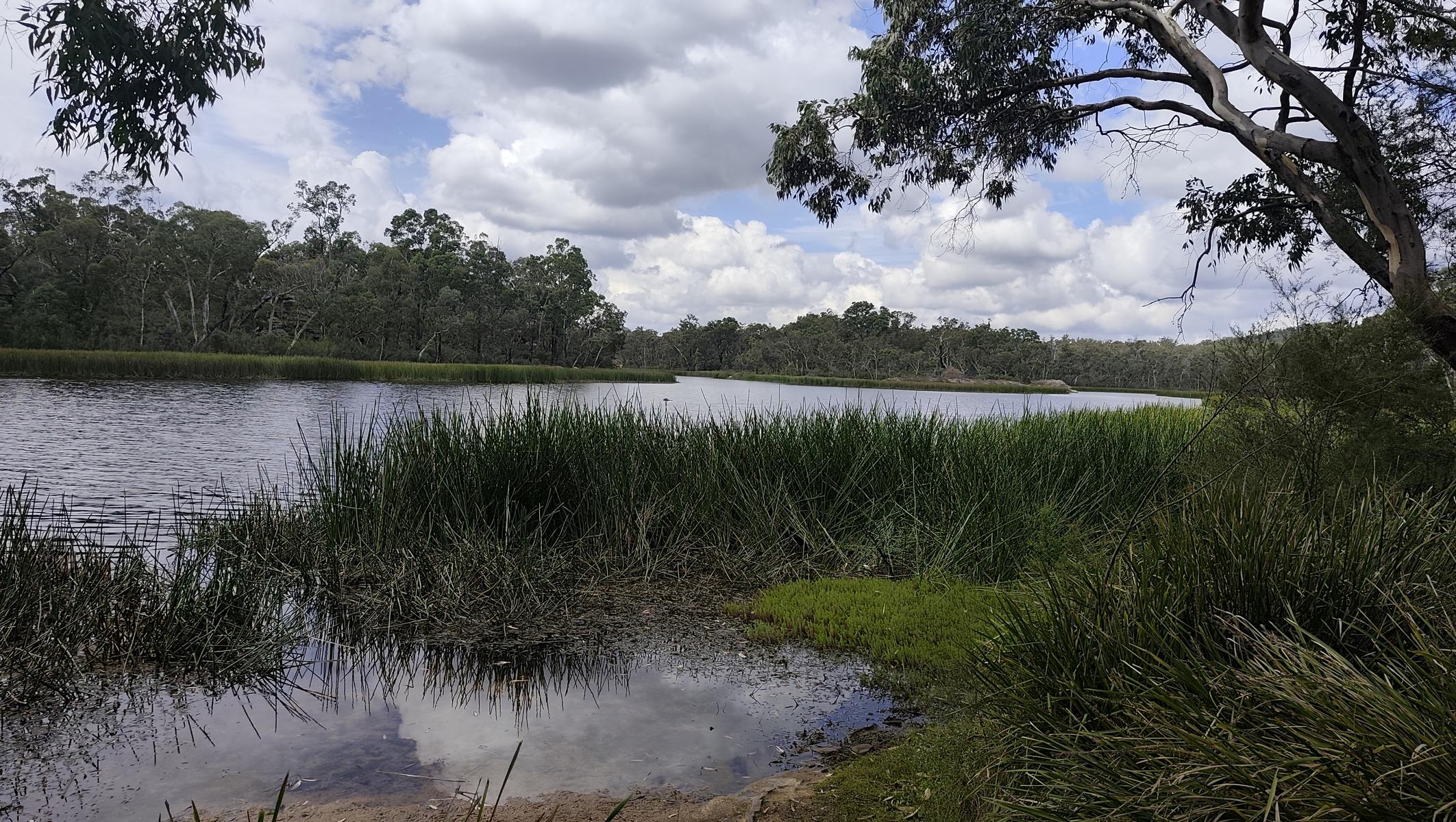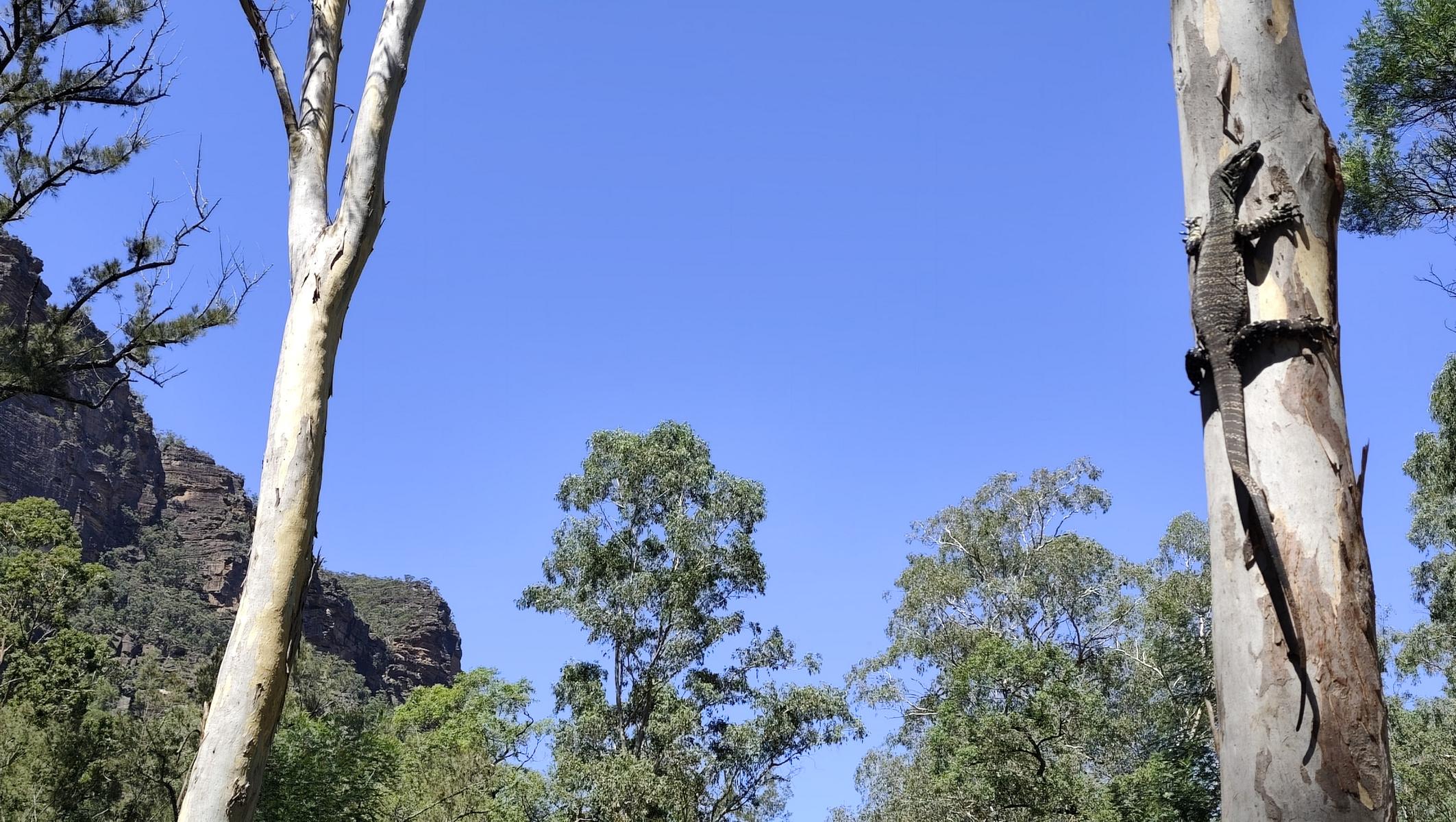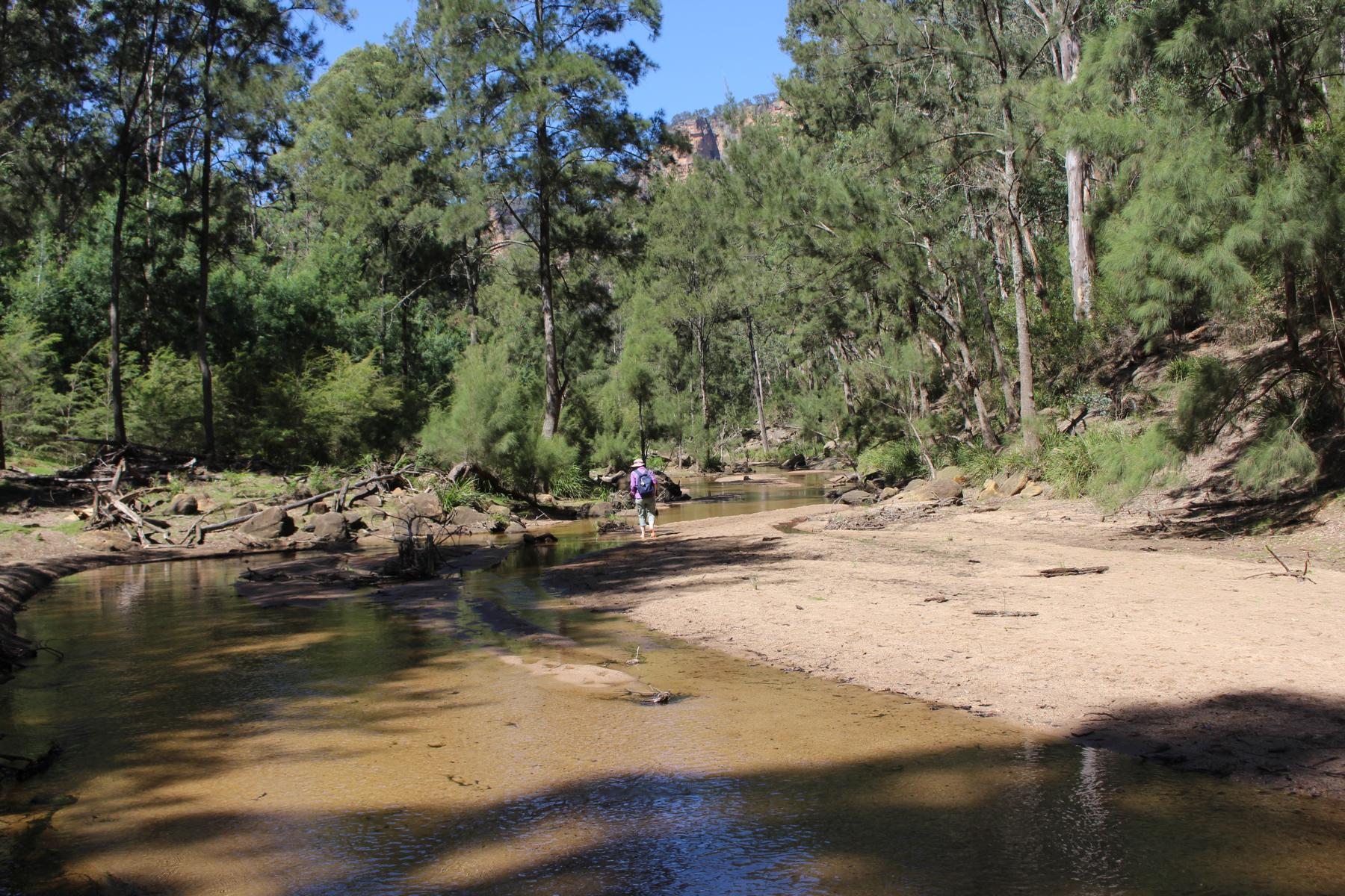 Ebenso im Wollemi NP angrenzend an das Capertee Valley besuchen wir den Ganguddy-Dunns Swamp Park. Der breite Flussabschnitt entstand 1922 nach dem Bau eines Wehres welches den Gudegang River staute für ein Zementwerk in einer näheren Stadt. Jetzt ist der gestaute Fluss ein idyllischer Ort. Der Campingplatz liegt um eine Pagoden-Sandsteinformation, der See lädt zum Schwimmen oder paddeln ein und Wanderwege führen entlang des Gewässers.