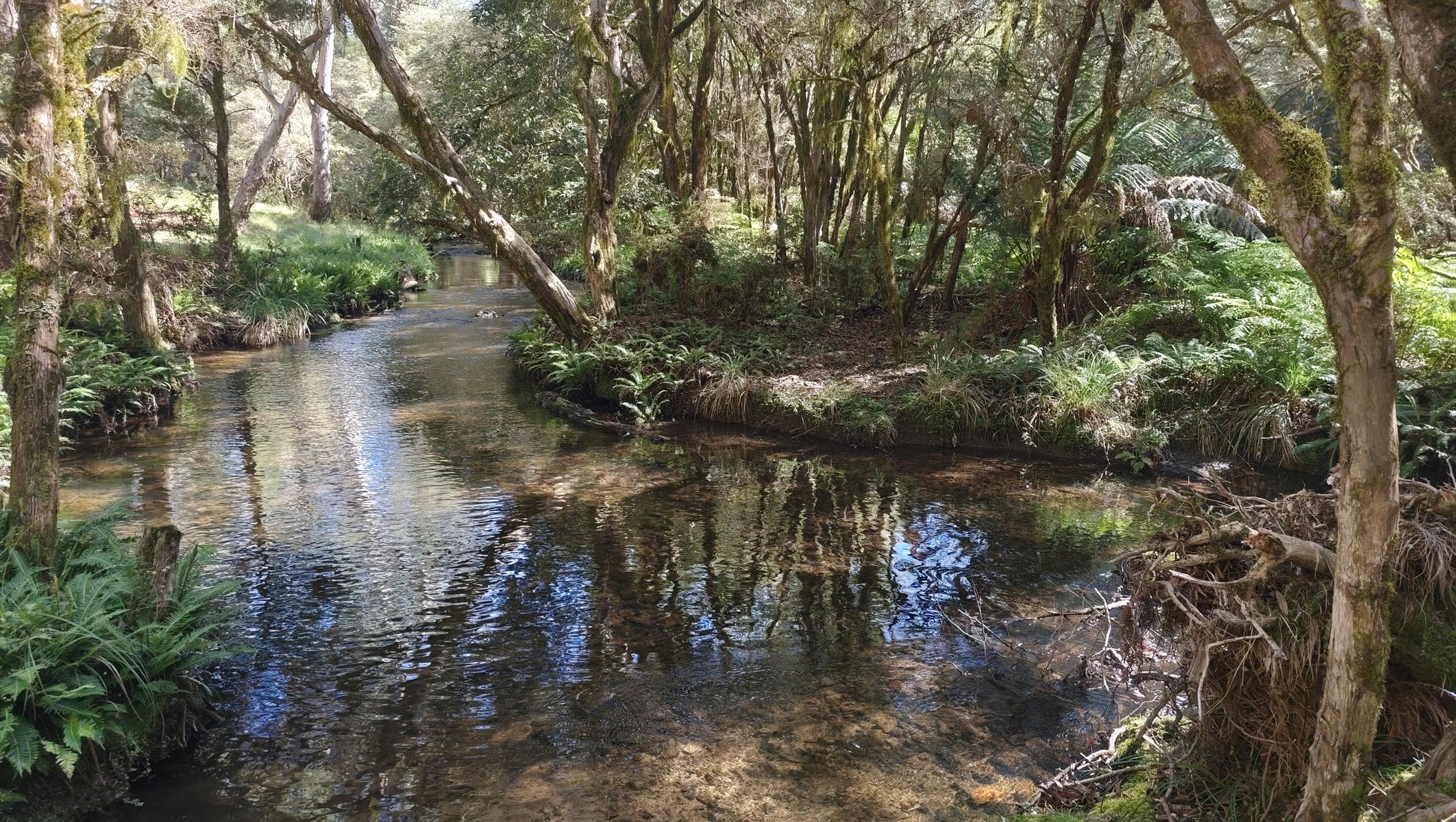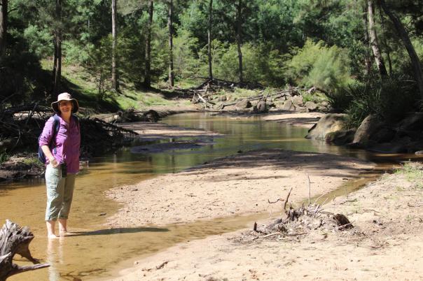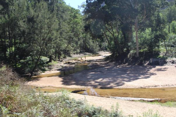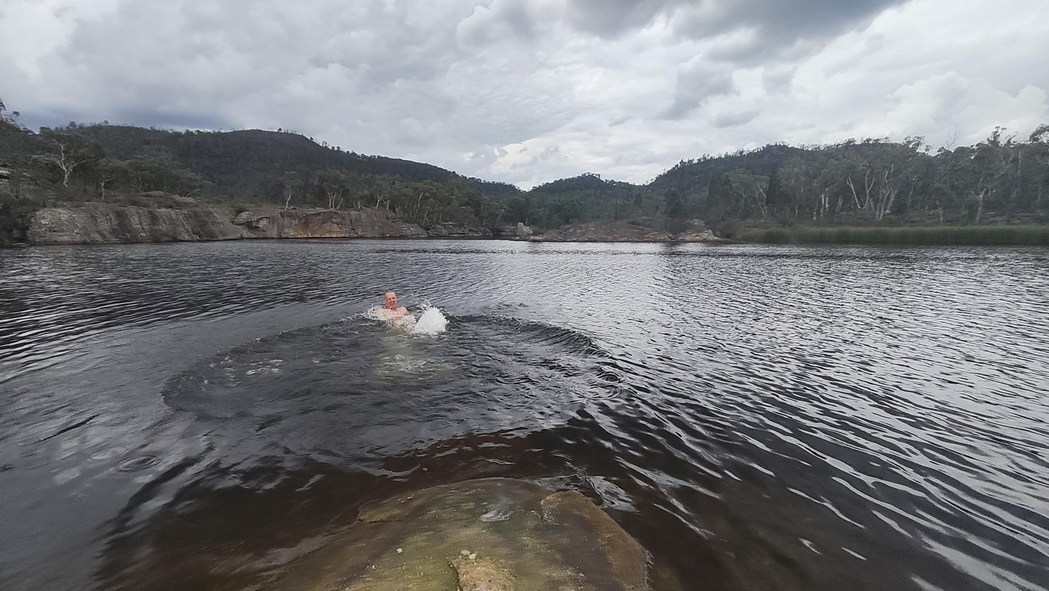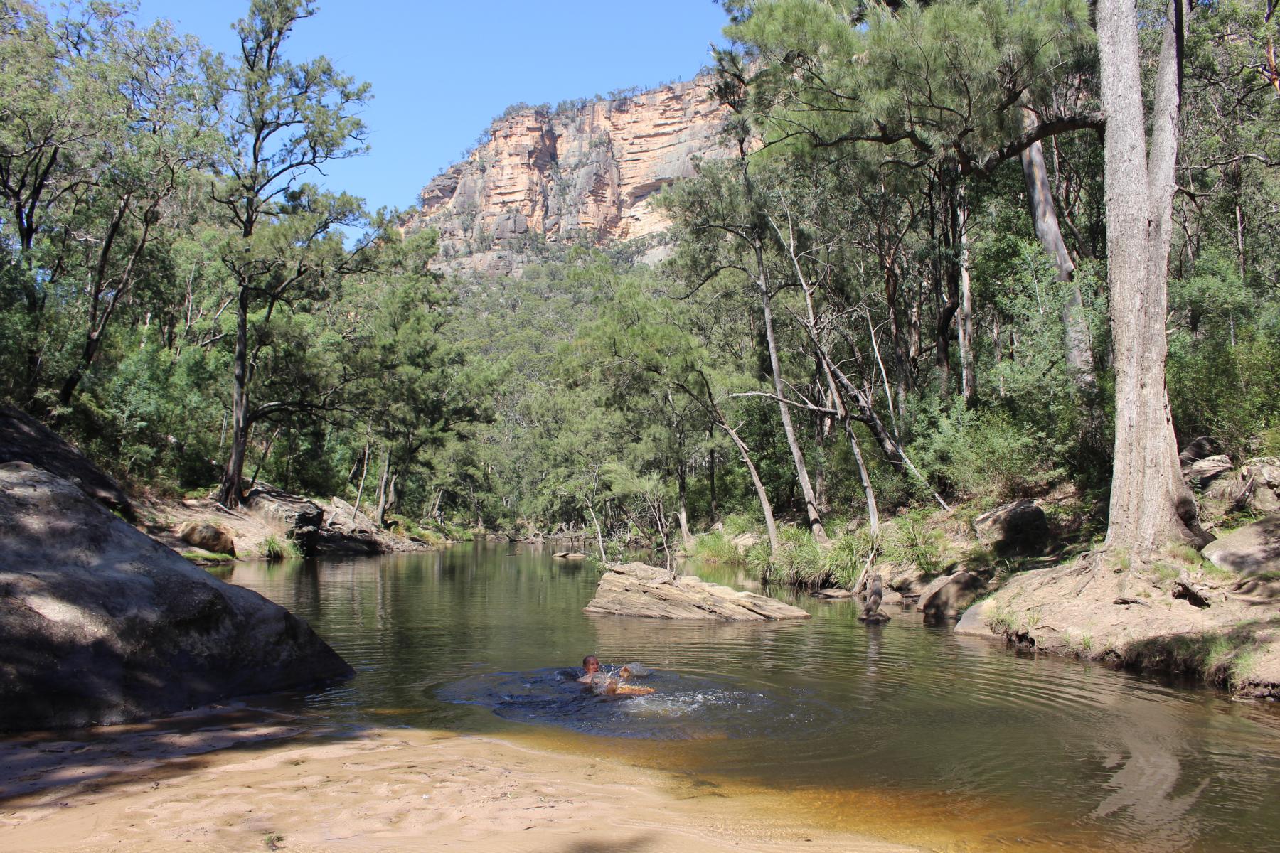 Das Bachbett mit seinem Sand ist klasse, ziehen uns die Schuhe aus und wandern stromabwärts bis wir an einen tiefen Pool gelangen und eine Schwimmpause einlegen.