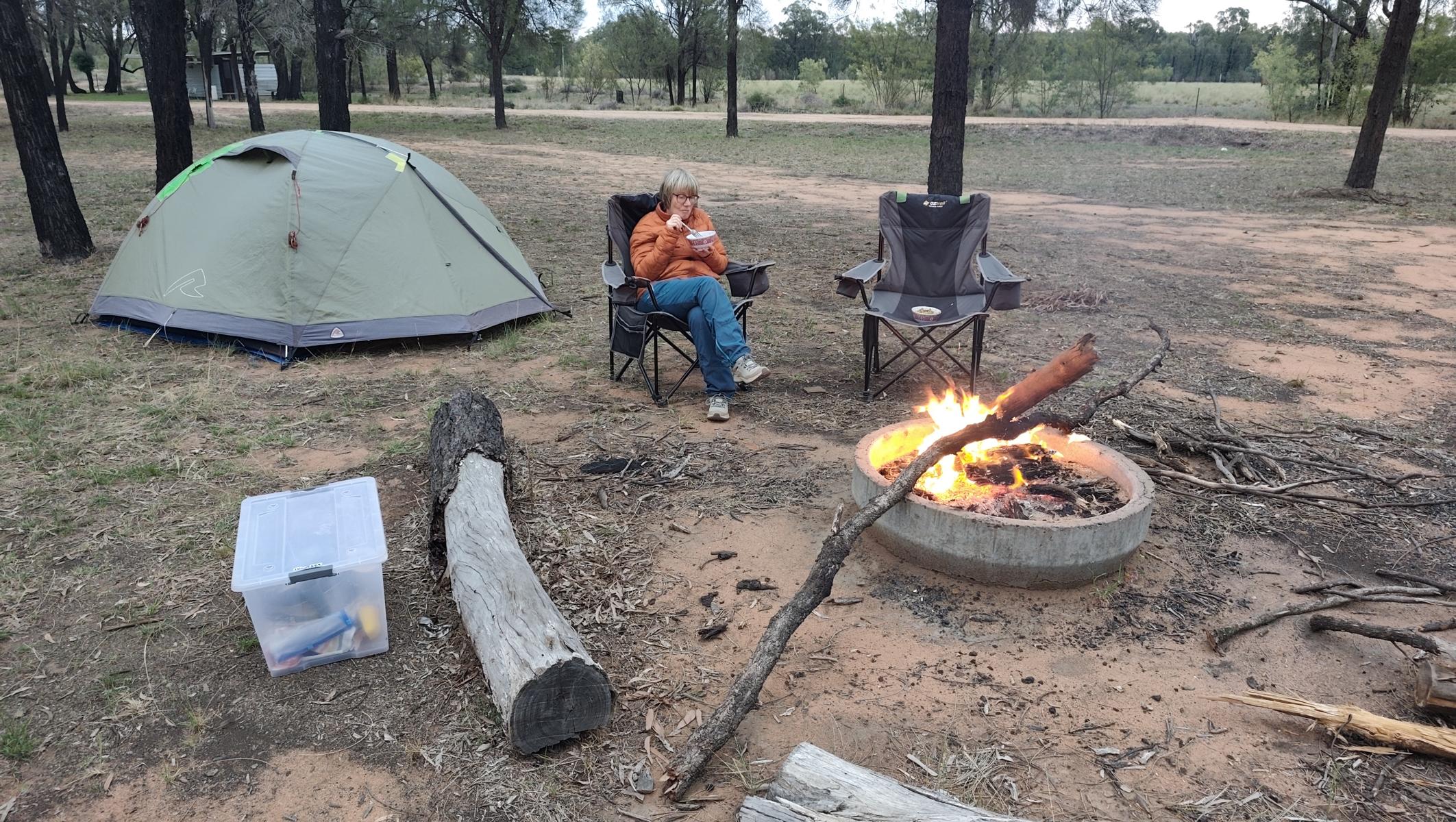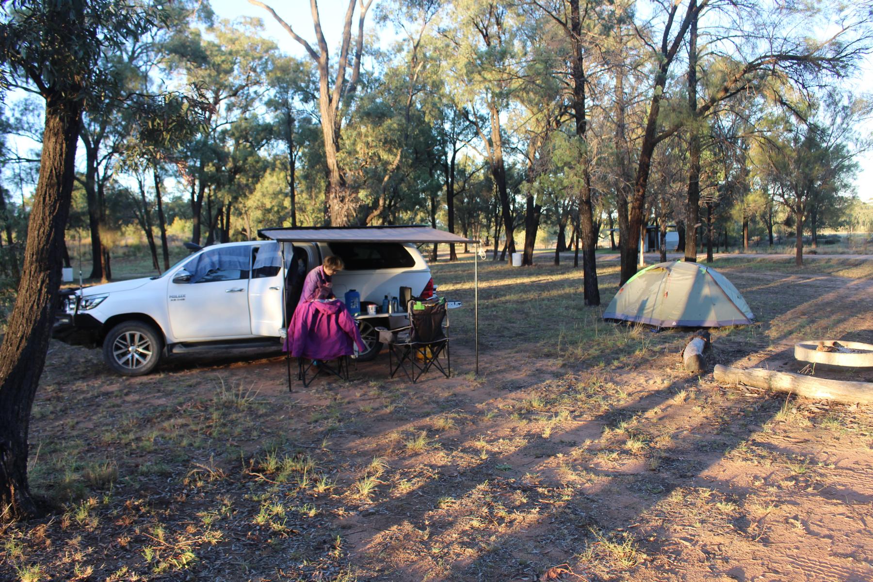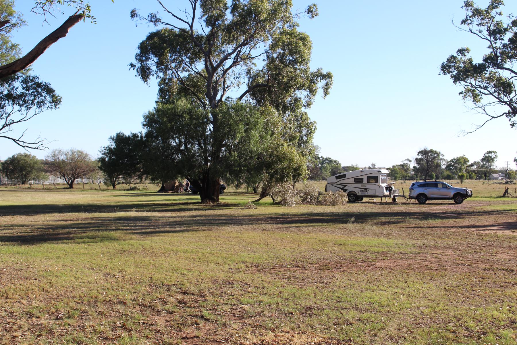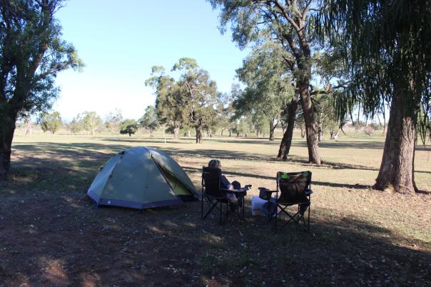 Ein wenig benutzter Golfplatz in Bellata, einer kleinen Stadt, bewog die Bewohner ihn auch Campern gegen Donation anzubieten. Folgen dem Angebot und campen im Schatten von Bäumen am Rande des Golfplatzes und bereiten dort den nächsten Post vor.