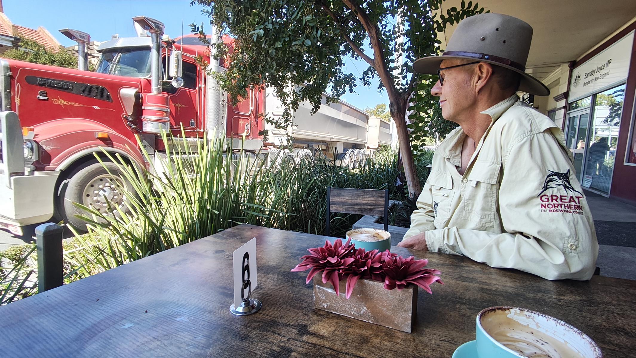 Auf der Weiterfahrt kommen wir an der Minenstadt Muswellbrook vorbei, füllen unsere Gasflasche auf und auch unsere Lebensmittelvorräte. An einer belebten Straße gibt es einen Cappu.