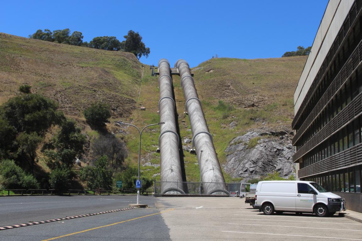 Wir besuchen Murray 2 Power Station. In den Alpines wird in vielen Gebieten Strom durch Wasserkraft erzeugt