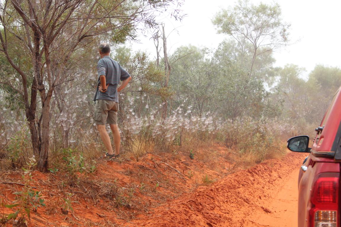 Da möchten wir nicht durchgehen, ein Spinnnetz neben dem Anderen, bei Broome